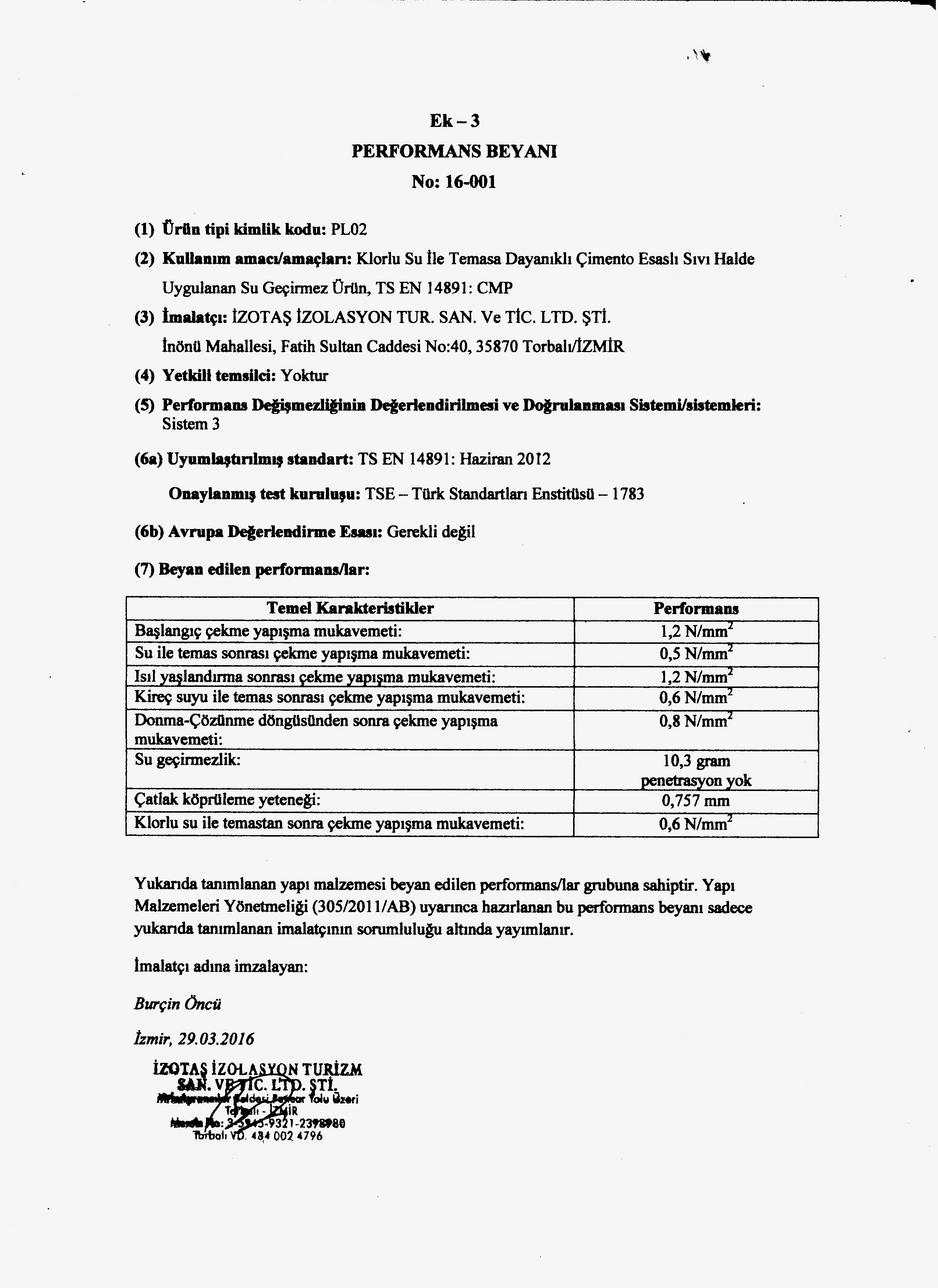 - Betonarme ve şap üzeri teraslarda, Gizli çatılarda, dere oluklarında, Beton ve demir İçme suyu depolarında, Zeytin kuyusu depolarında, Sıcak ve soğuk termal havuzlarda, Asansör Boşluklarında, Kanalizasyon ve atık su arıtma tesislerinde, Betonarme borular ve tünellerinde, Araç ve yaya trafiğine, açık ya da kapalı otoparklarda, Su basıncı olan bodrum-temel perde beton duvarlarında negatif (içten) uygulamalarda, Deniz suyuna maruz kalan temeller ve duvarlarda, Betonarme yapılarda statik hareketlilik olmayan ince kılcal çatlakların kapatılmasında, Bahçe teraslarda bitki köklerine karşı dayanım ve geçirimsizlik sağlanmasında kullanılır.